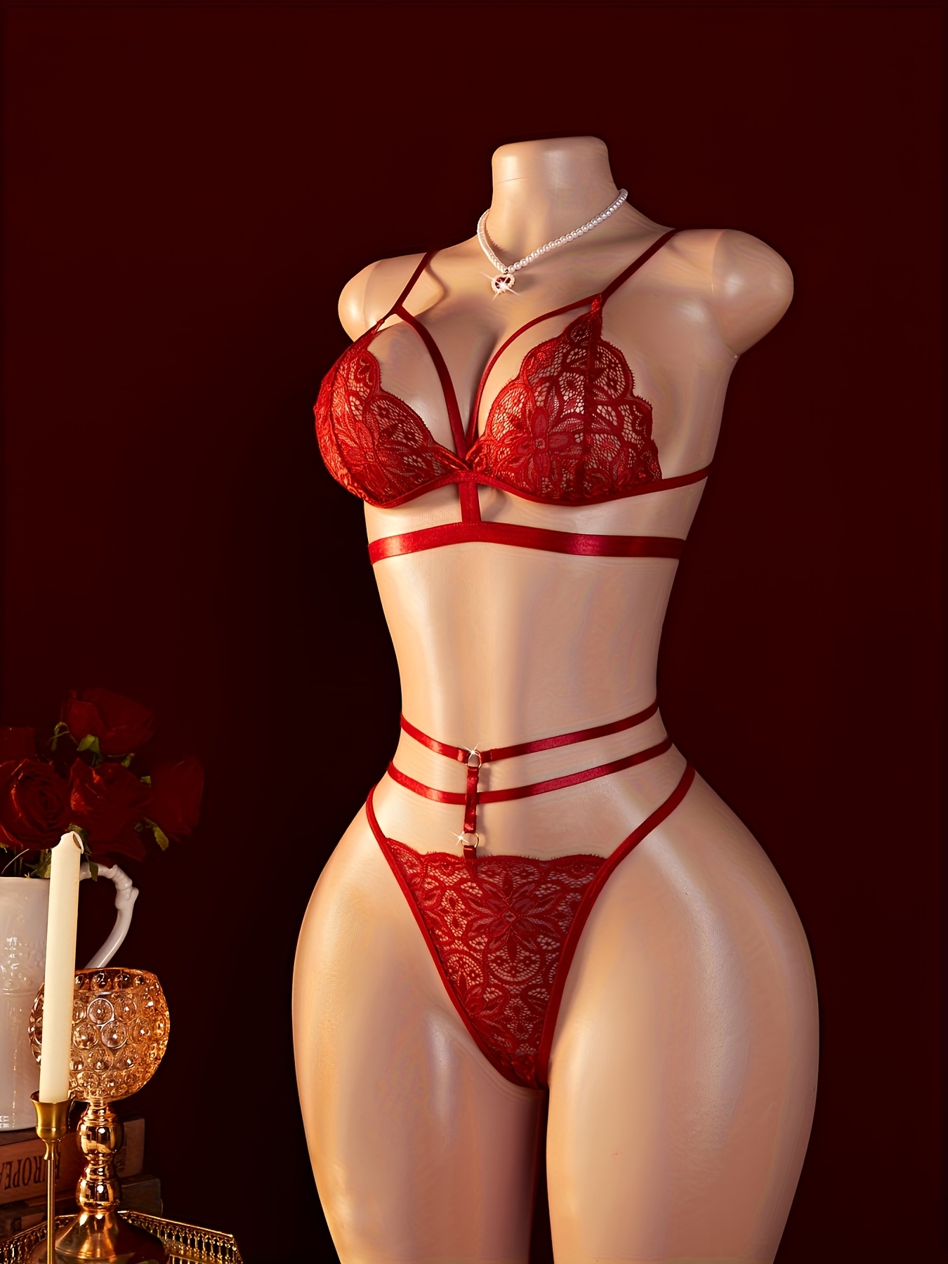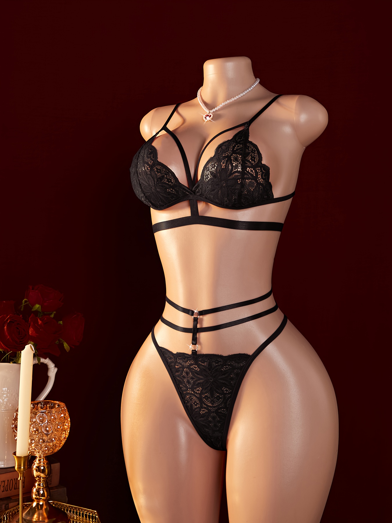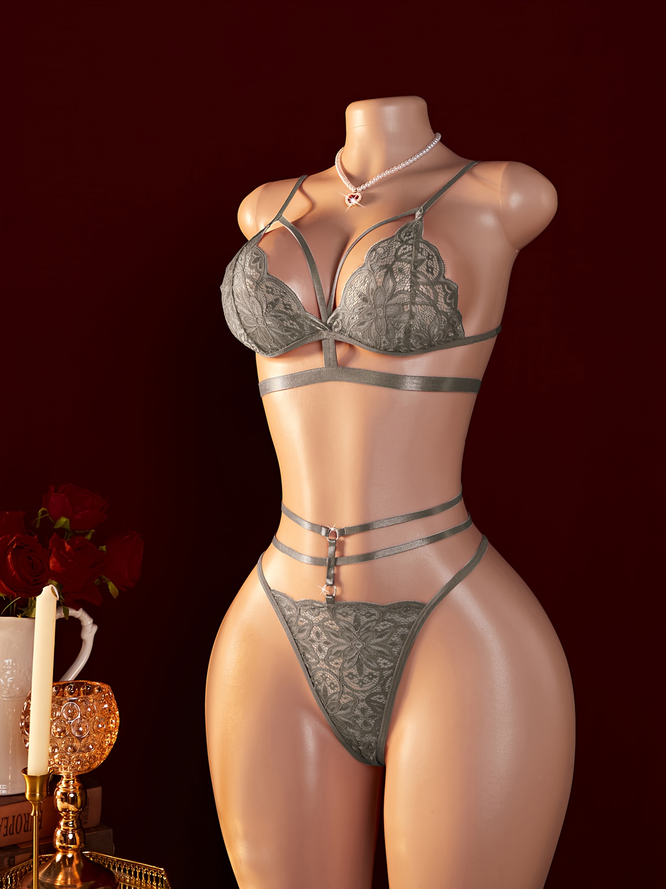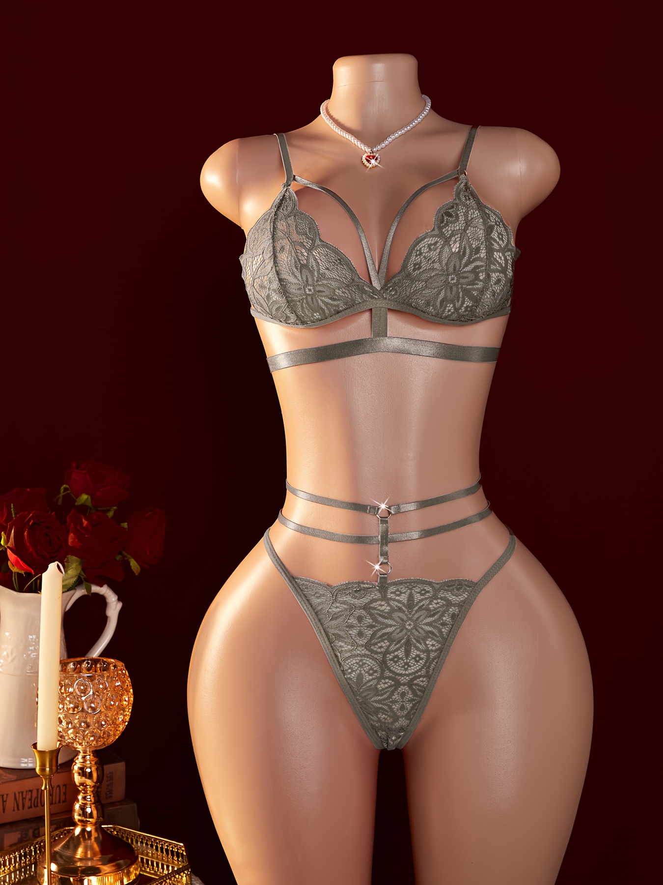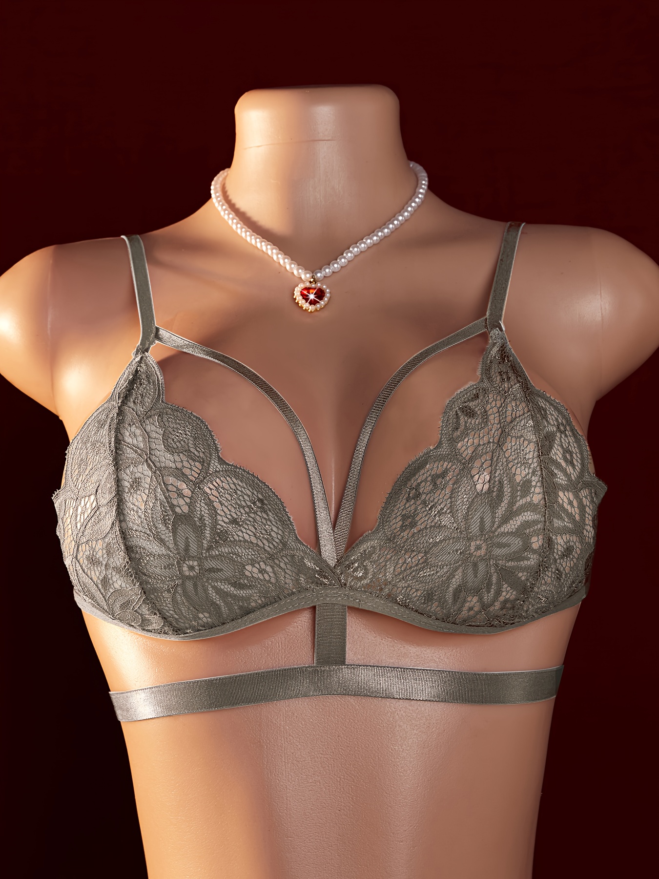 Women’s Sexy Contrast Lace Single-Layer Mesh Bra with Sheer Elastic Straps Lingerie Set
