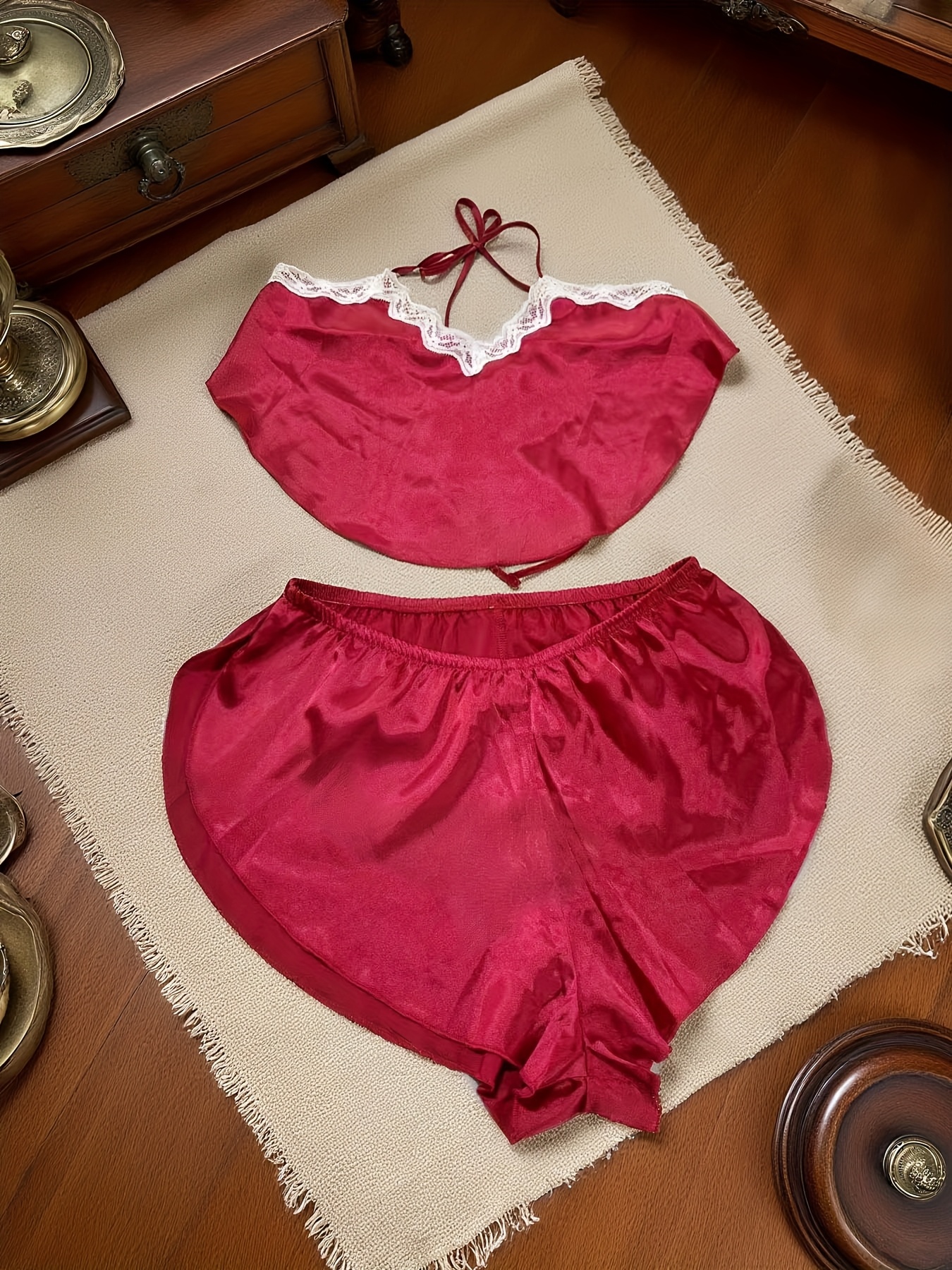Women’S Sexy Deep V Lace Solid Color Bralette and Shorts Set, Comfortable Pajama Outfit for All Seasons, Perfect Gift for Friends, Couples, or Wife – Women’S Sleepwear