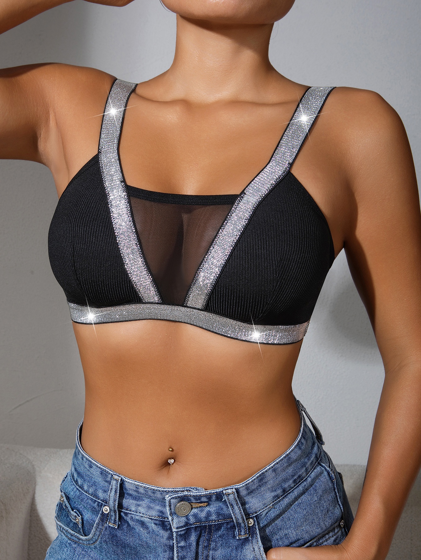 Women’S Sexy Lace Bra with Sparkling Silver Trim – Comfortable, Breathable, Medium Support, No Padding, Solid Color Design for Casual Attire, Comfortable Lingerie | Sexy Lace Bra | Comfortable Fit