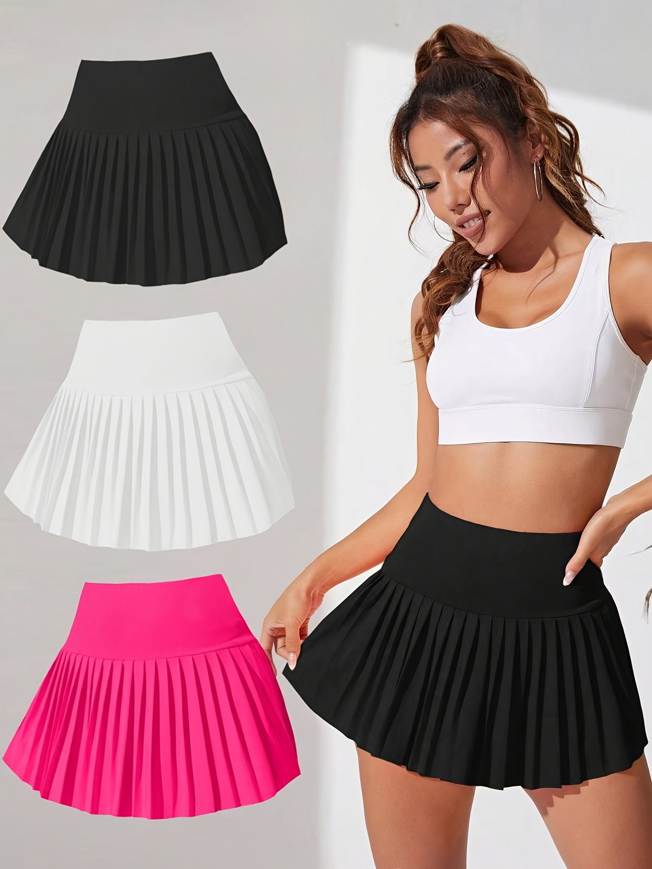 Women’s Skirt Set of Three, Multi-Color Pleated Skirts in White, Black, and Burgundy, Includes Lined Pants