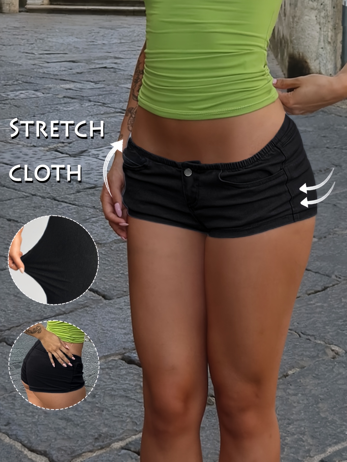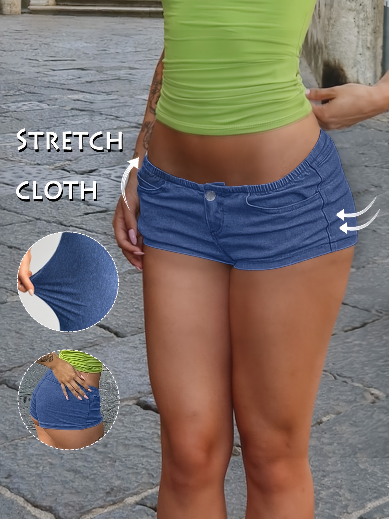 Women’s Stretch Denim Low-Rise Mini Shorts, Casual Street Style with Pockets, Perfect for Spring/Summer, Light Blue