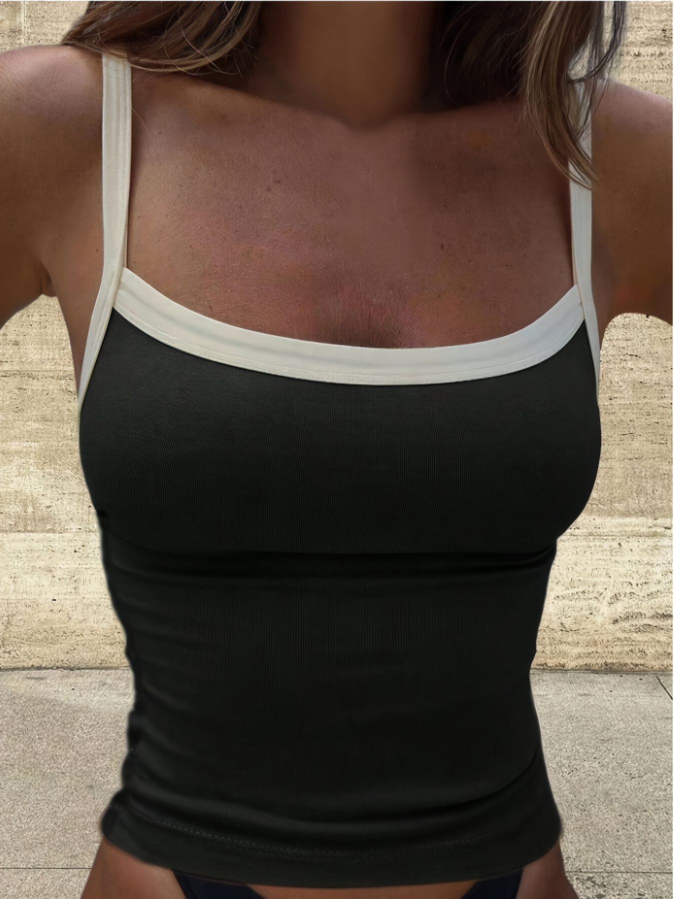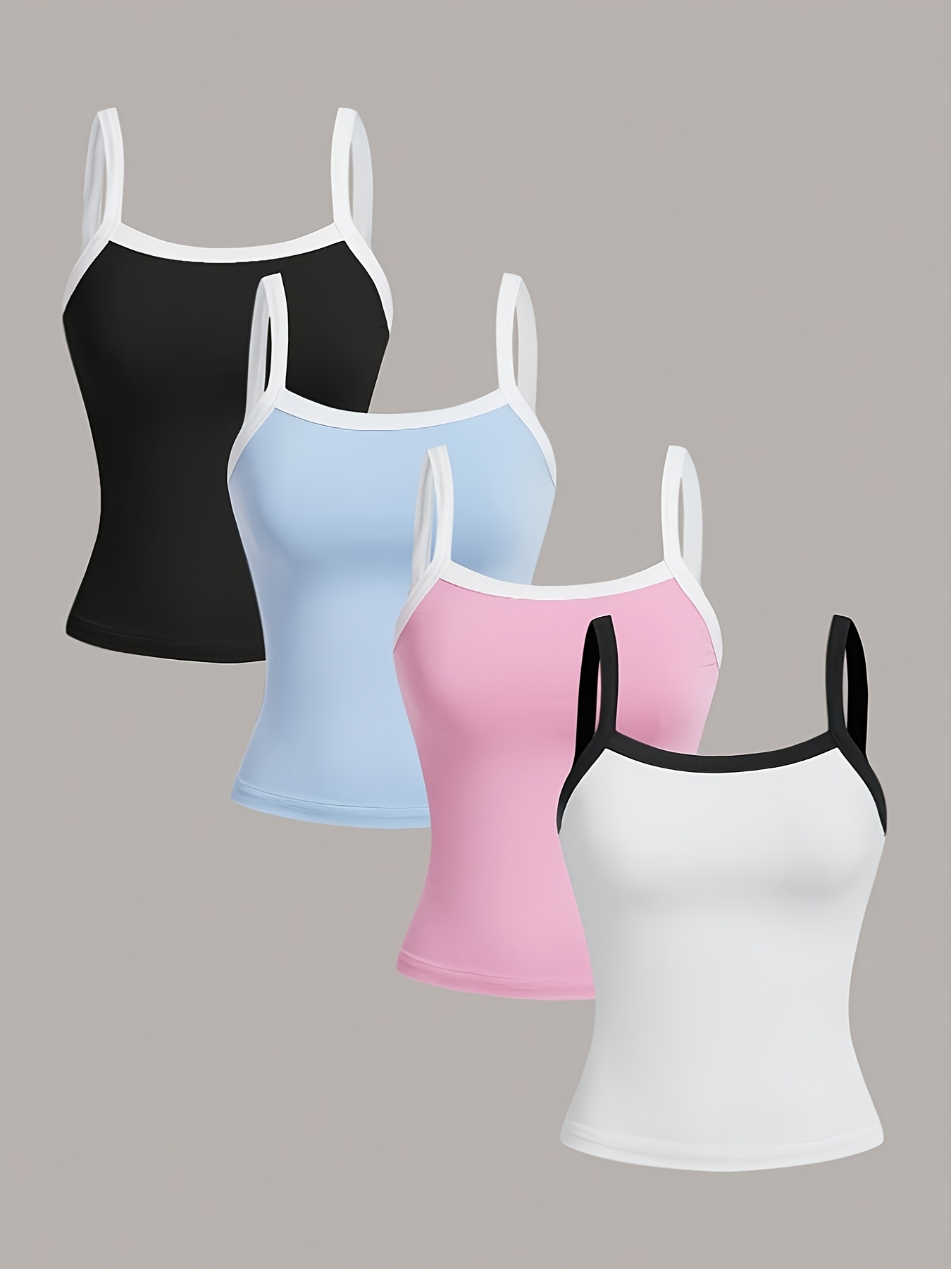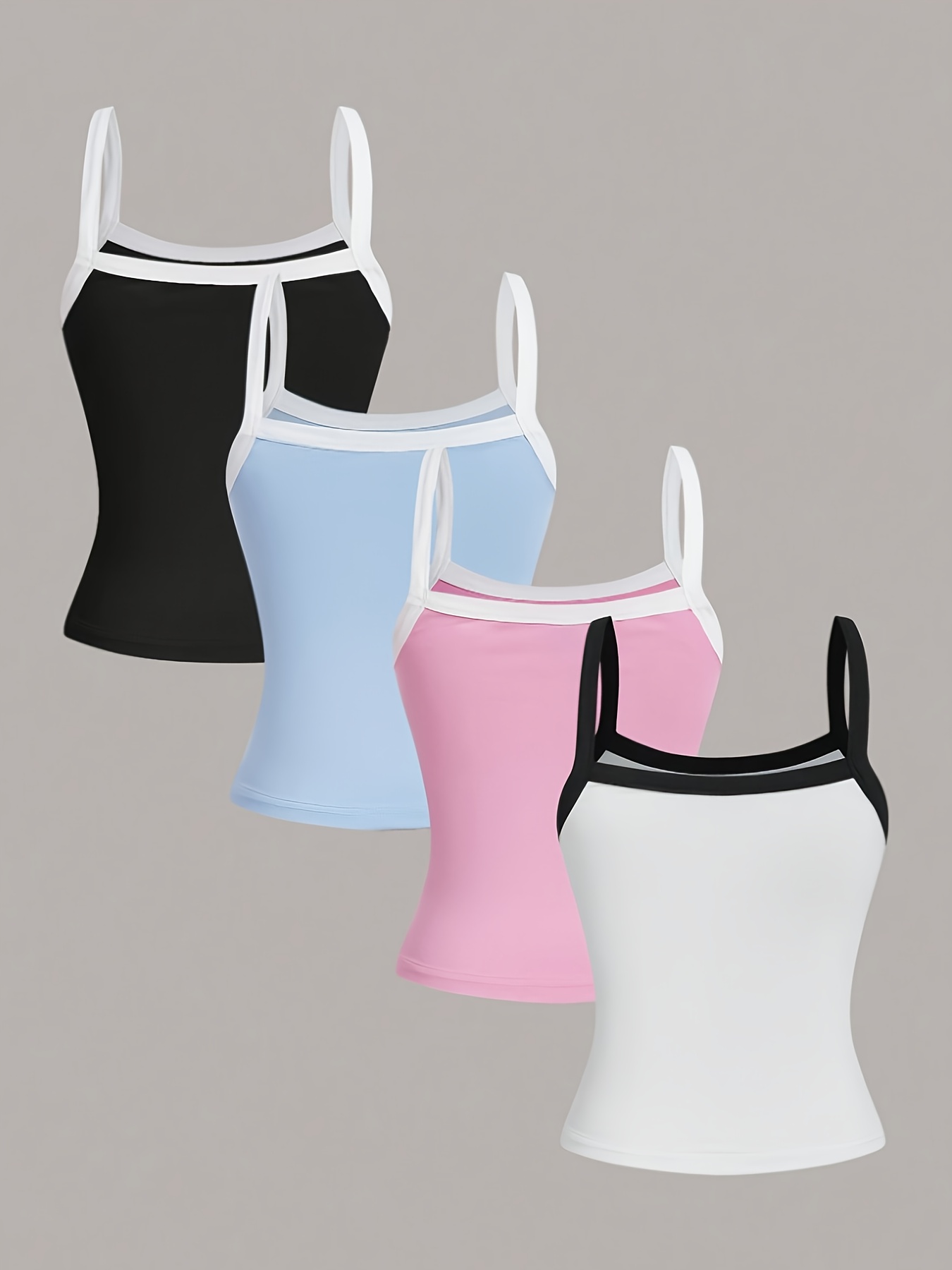 Women’s Summer y Color-Block Casual Cute Tank Tops for Daily Outings, Beach, and Shopping, Black & White & Pink & Blue 4pcs Tank Tops