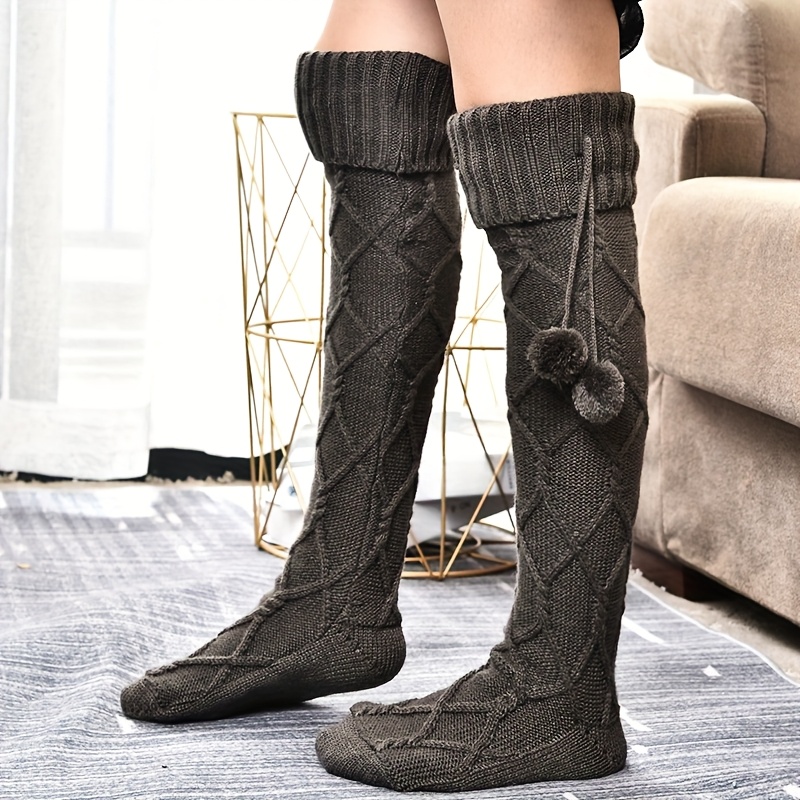 Women’s Thermal Over-the-Knee Socks, Winter 2025 with Tassel Fringe & Diamond Check Tartan, Hand Washable Leg Warmers for Skirts Boots Pajamas, 6 Colors (Red/Black/Dark Gray/Gray/Purple), Mid-Calf/Knee-High/Floor Sock