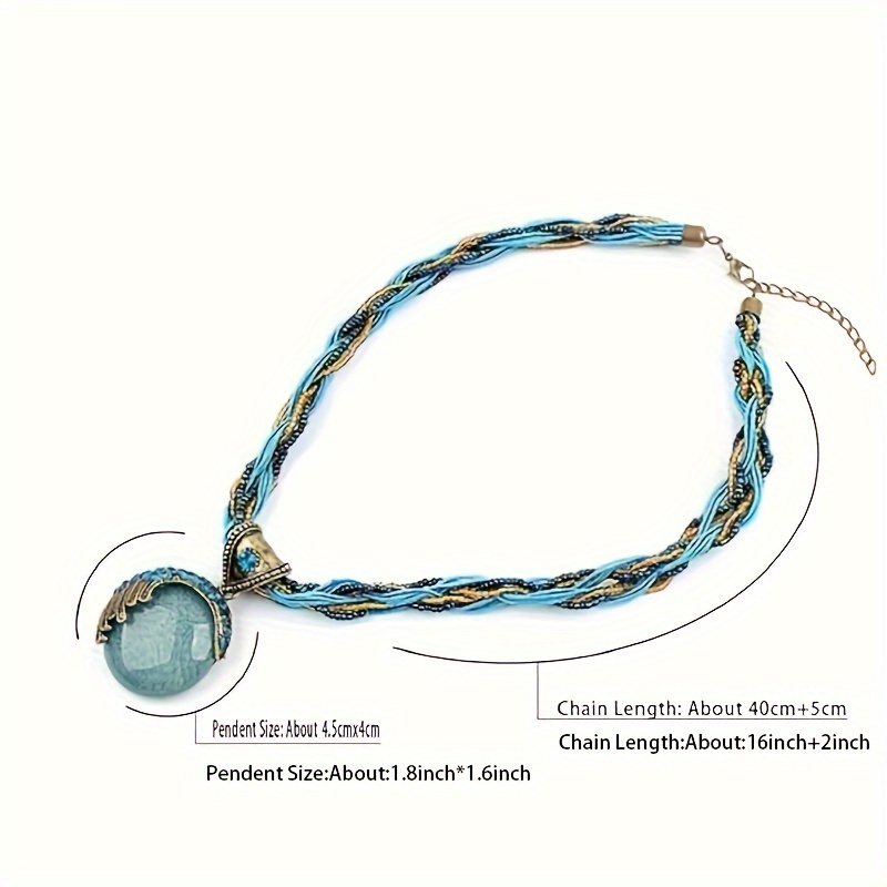 Women’S Vintage Bohemian Necklace – Twisted Rope Chain with Turquoise Rhinestone Pendant, Exaggerated Retro Jewelry for Everyday & Formal Events, Bohemian Party Necklace Gift for Women, Versatile Accessory, Ethnic Style, Artisanal Design, Statement Piece, Fashion Lovers, Highend Accessory, Specialty Jewelry, Holiday Shoppers, Women’S Fashion Jewelry, Summer Fashion, Best for Christmas