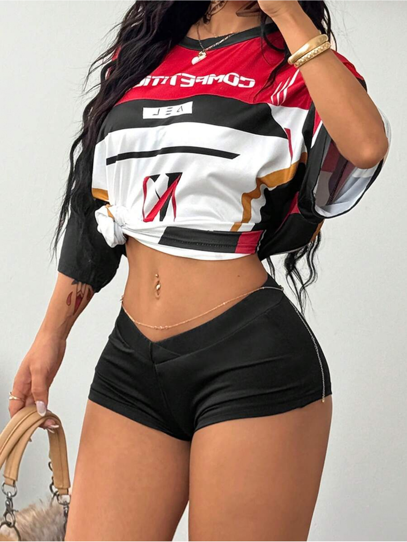 Women’s Y2K Hot Minimalist Low-Rise Stretchy Black Track Shorts – Ultra Low Waist Mini Shorts with Elastic Waistband, High- for Concerts, Festivals & Vacation Outfits (Casual Athletic Wear) 91% /9% Elastane