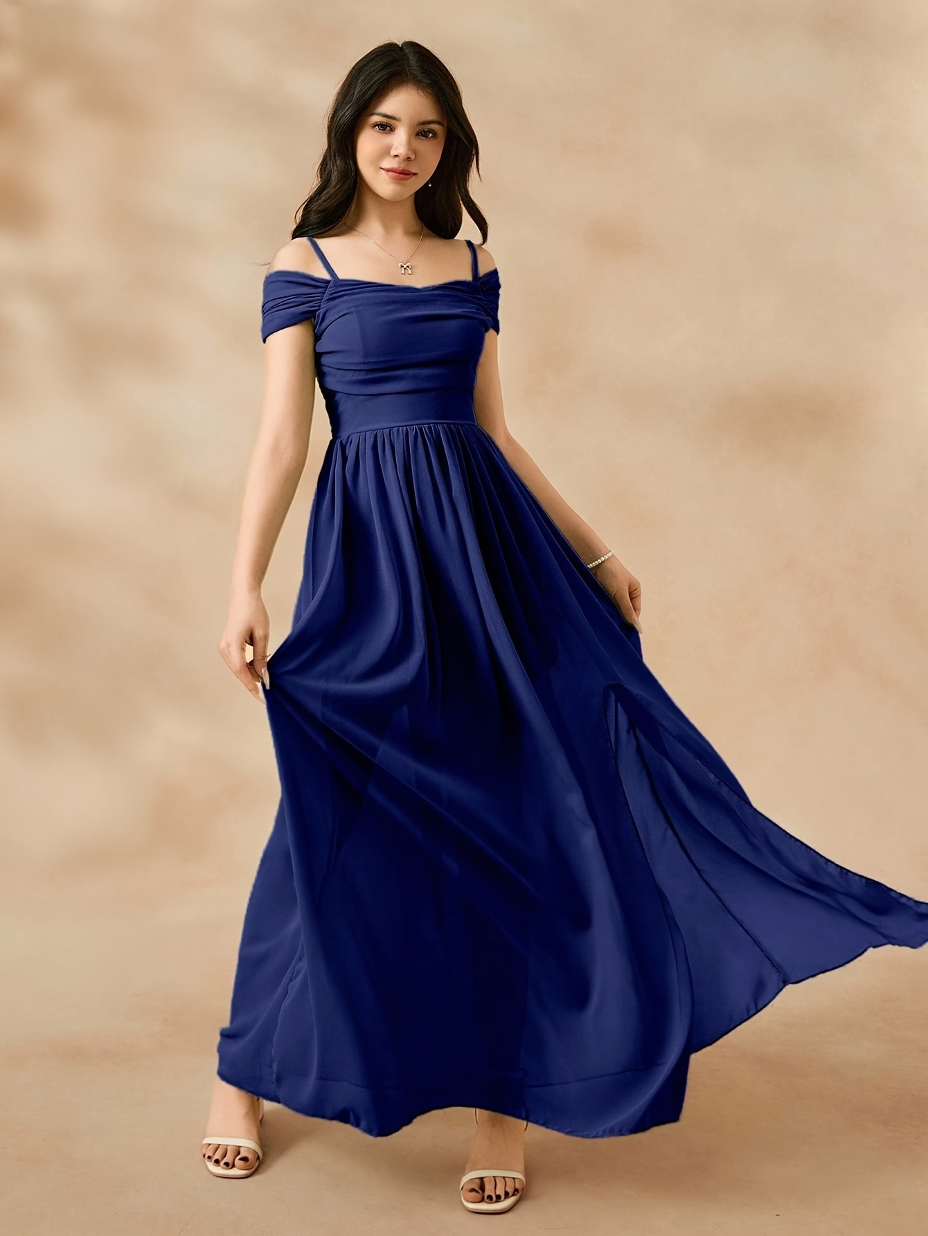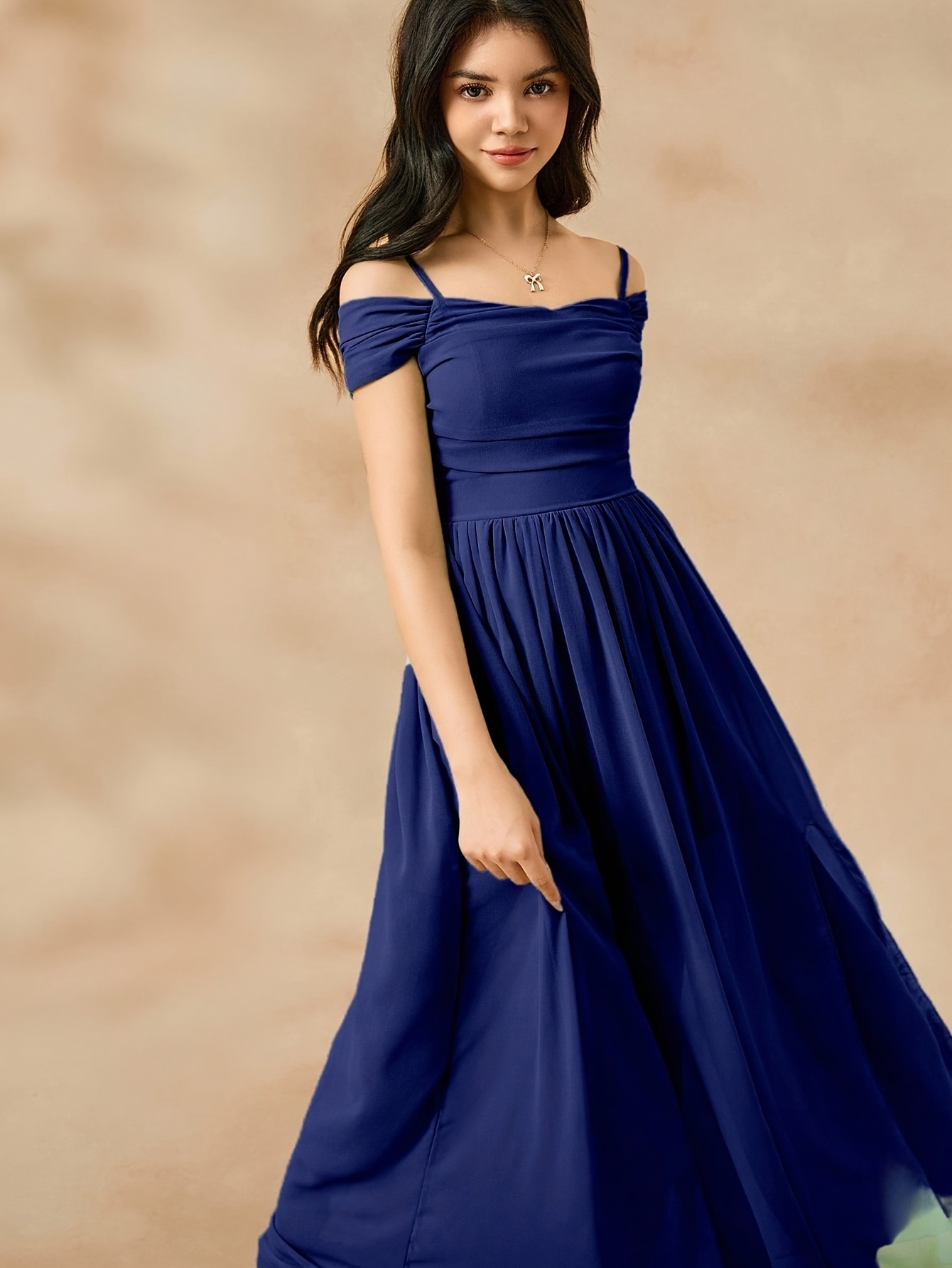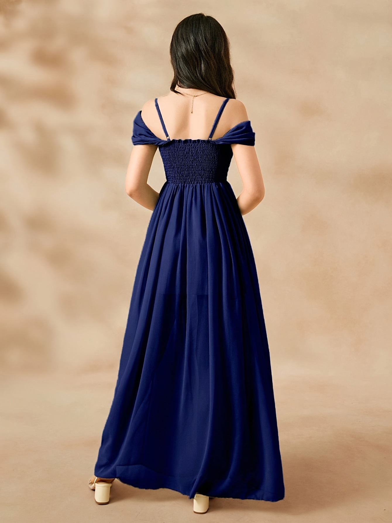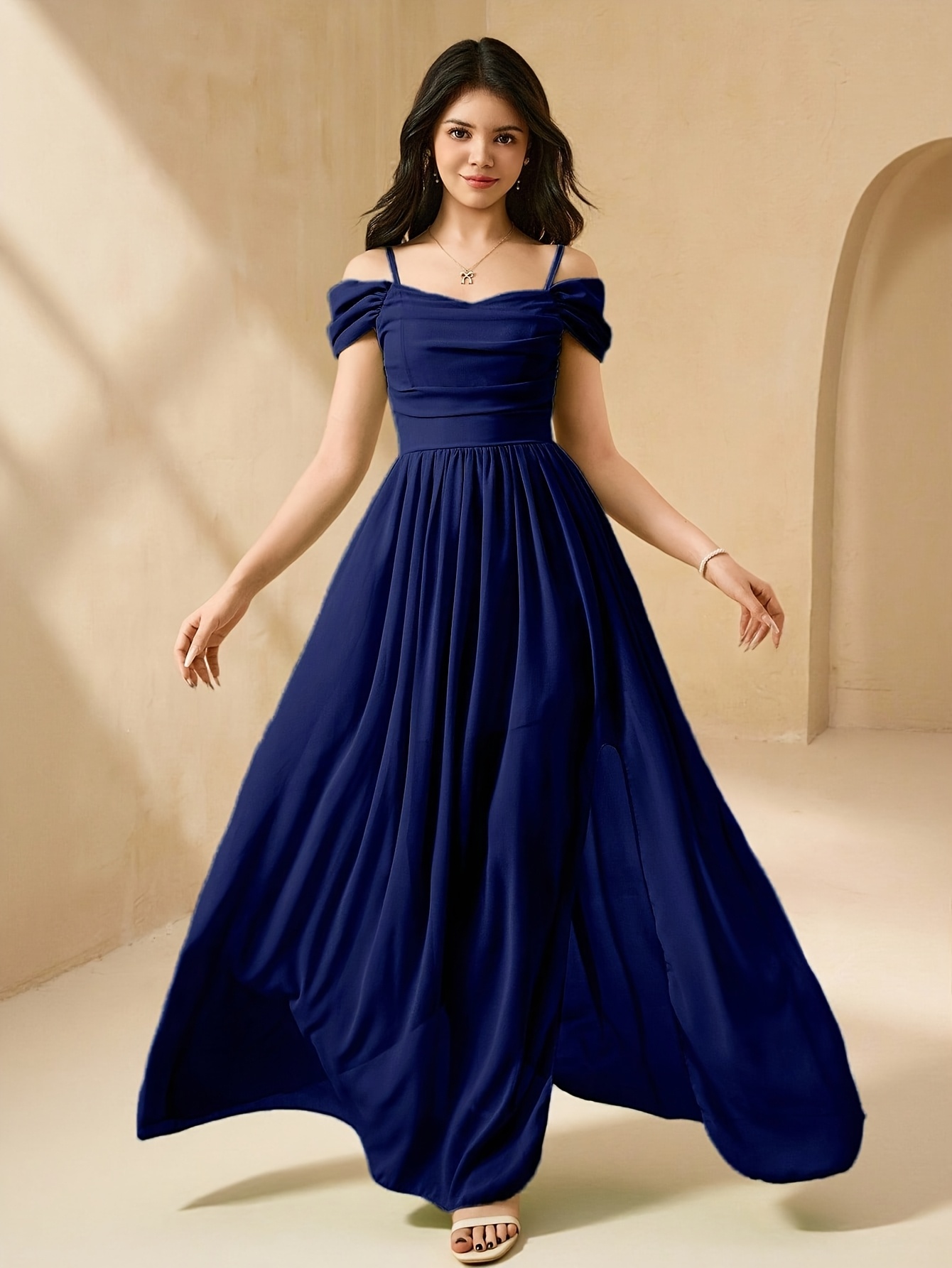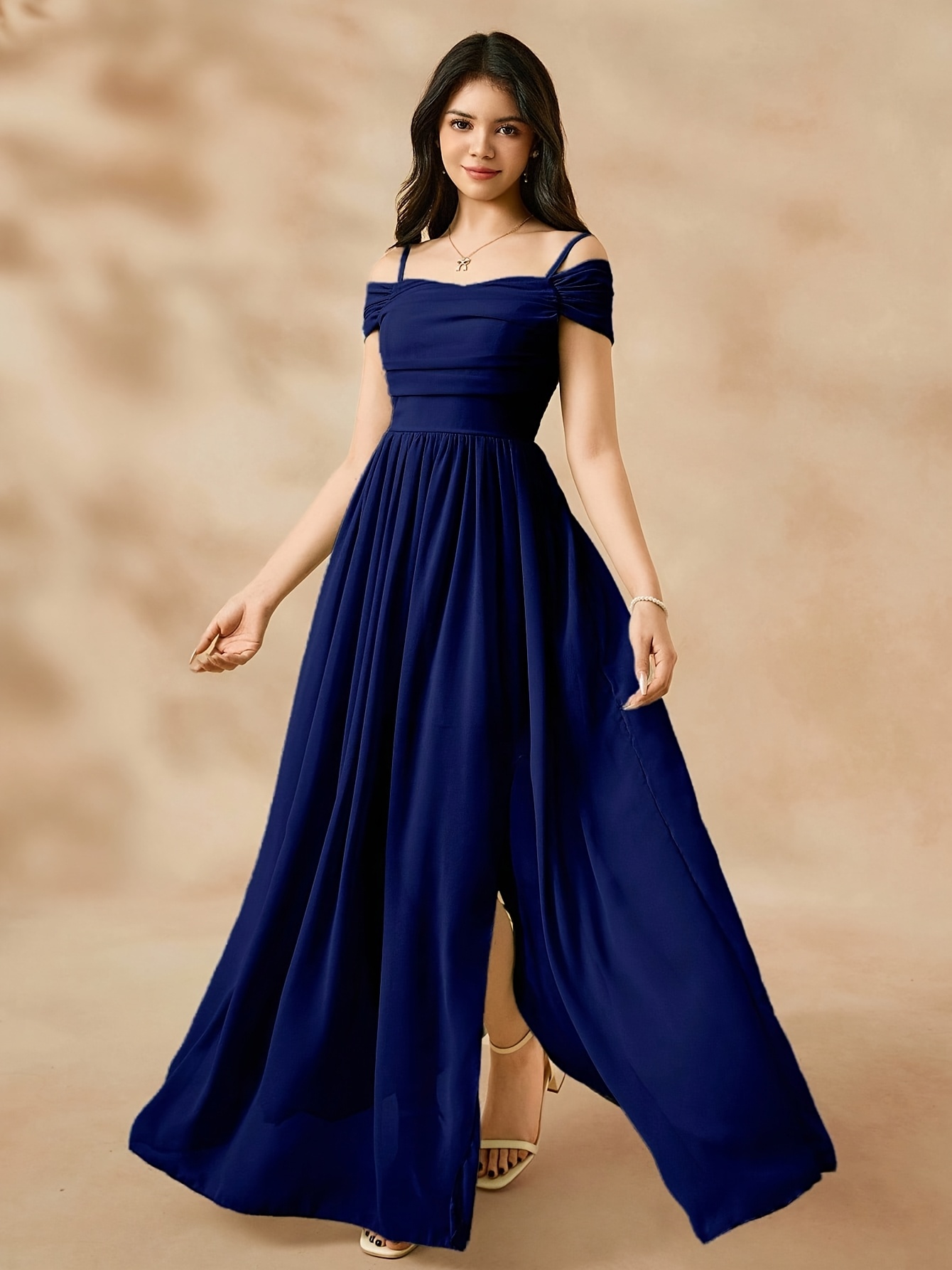 Youth Solid Color Fresh Chiffon Niche Camisole Dress, Summer Seaside Vacation Gown, Elegant and Romantic Slit Apparel, for Teenager