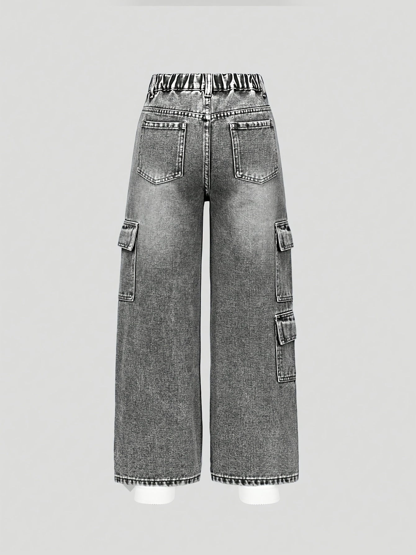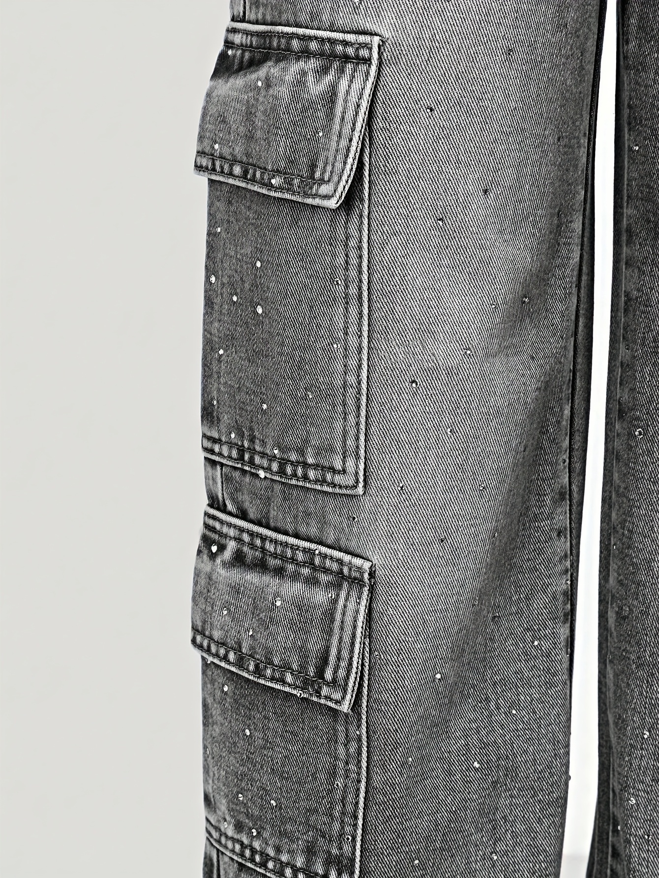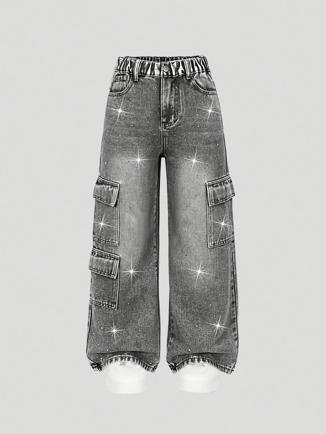 Youthful Y2K Style Street Casual Loose-Fitting Cargo Faux Denim | High-Waisted Elastic Design | Dazzling Rhinestone Embellishments That Catch The Eye | Practical And Trendy Multi-Functional Flat Pocket Design | Hip-Hop Style Wide-Leg Pants with a St
