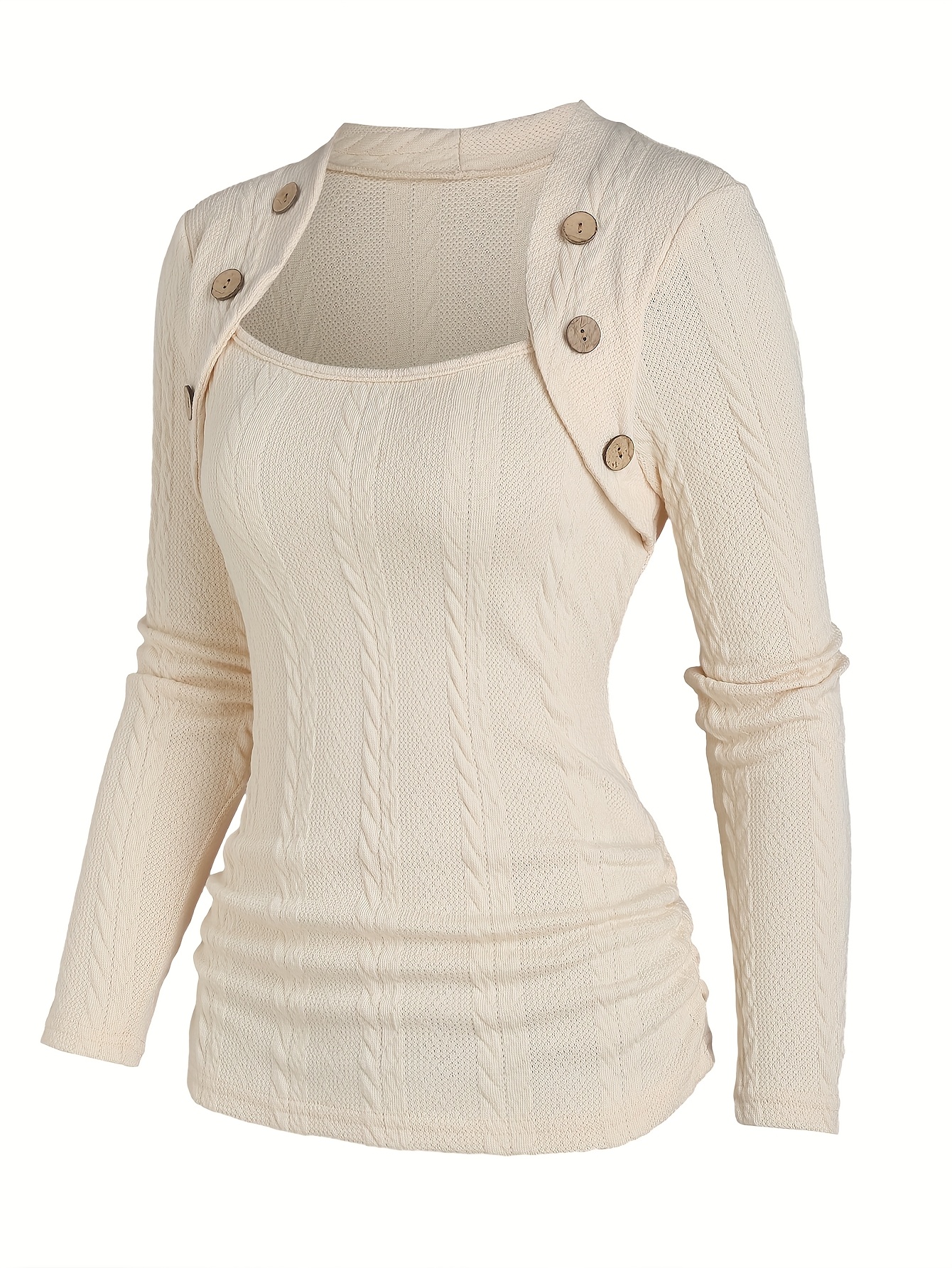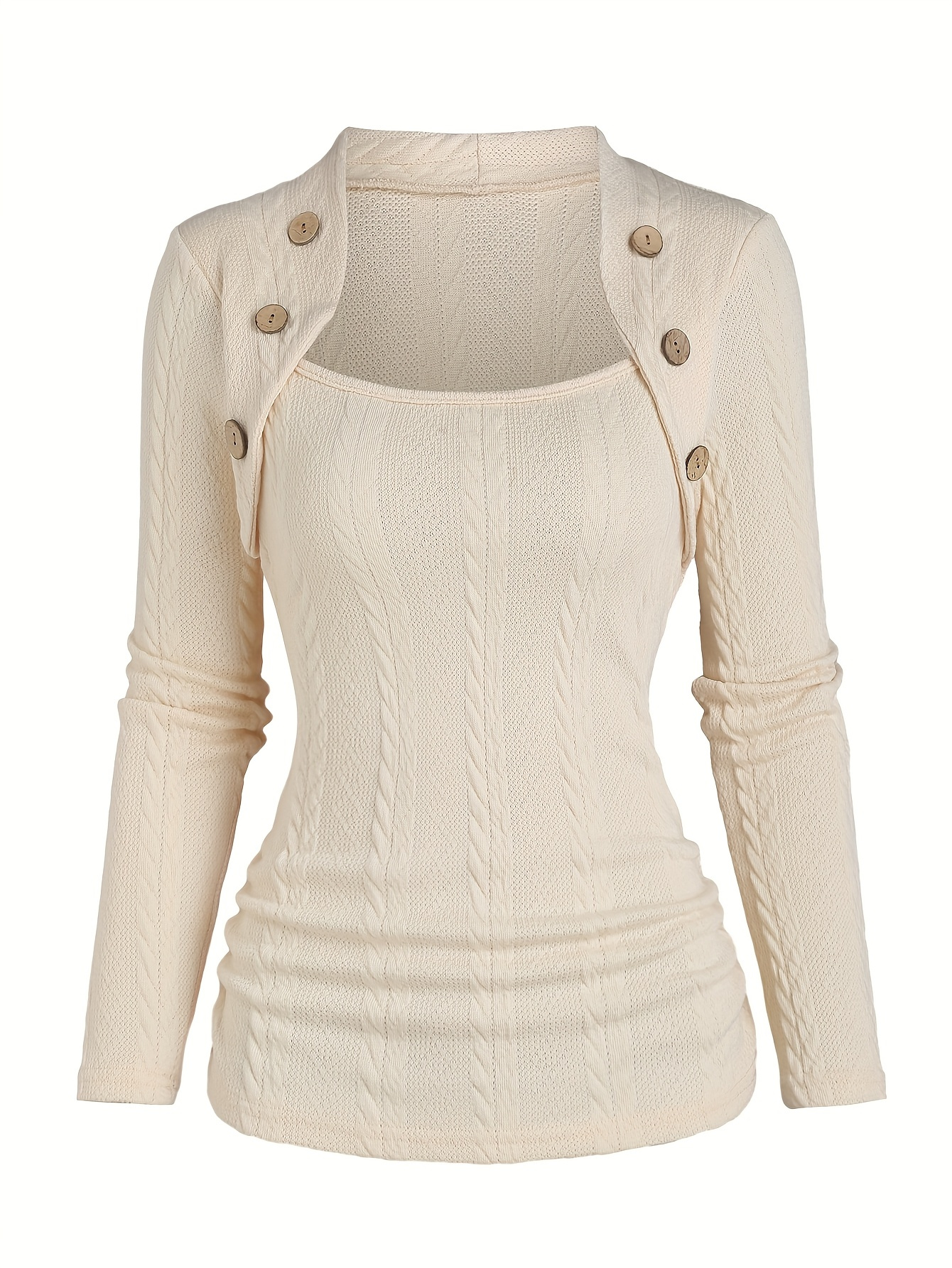 Zhaocai Yanxuan European And American Fashion Spring New Women’S Casual Faux Button Y2K Cable Long Sleeve Top