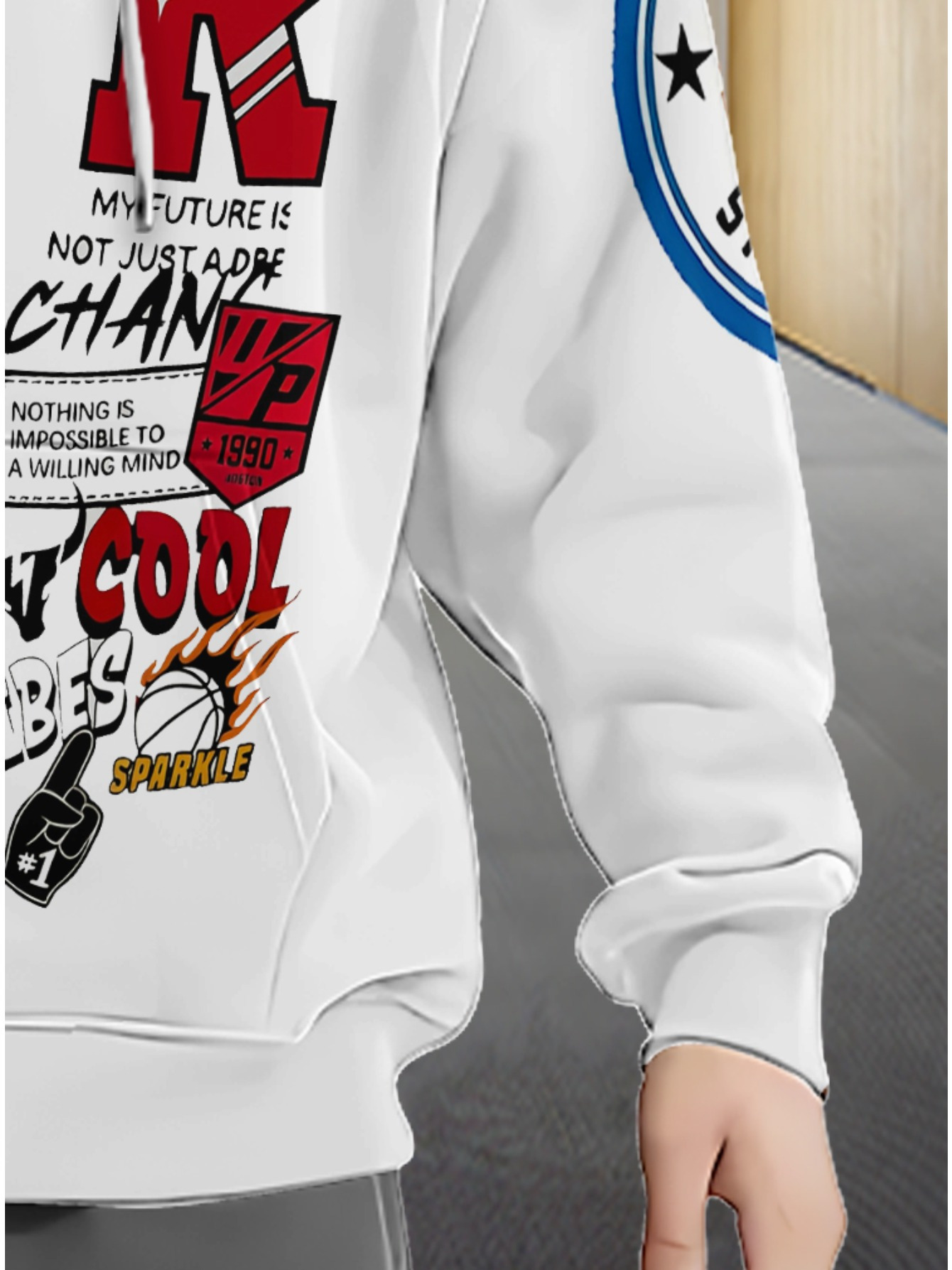 “There is a feeling of ‘lightness’ that comes with this hoodie—you almost forget you’re wearing it until the wind picks up. The fabric has a cool, crisp touch against the skin that feels incredibly refreshing during a workout. One of the best parts is the pocket placement; you can actually go for a jog without your phone slapping against your leg. It makes you feel visible and prepared. Whether you’re standing on the sidelines of a sports event or navigating a crowded subway, the bright white aesthetic and sharp graphics give you a clean, ‘pro-athlete’ vibe that feels as fast as it looks.”