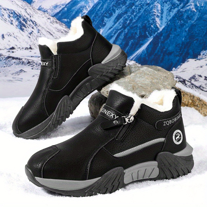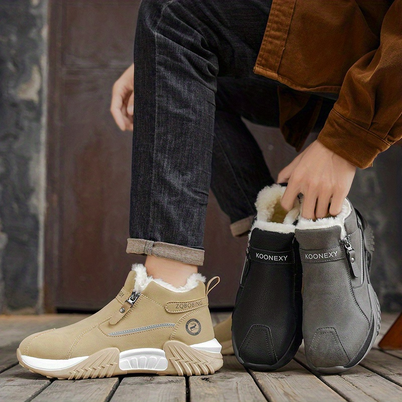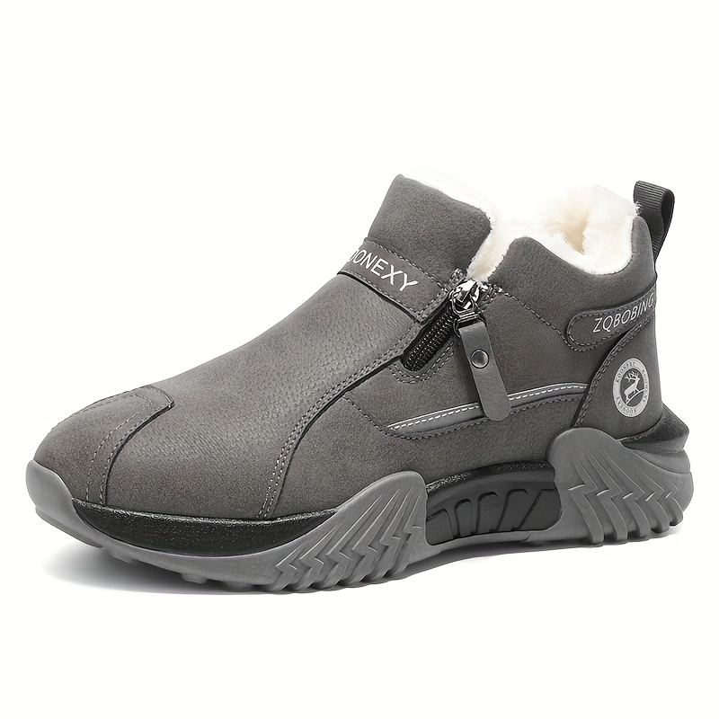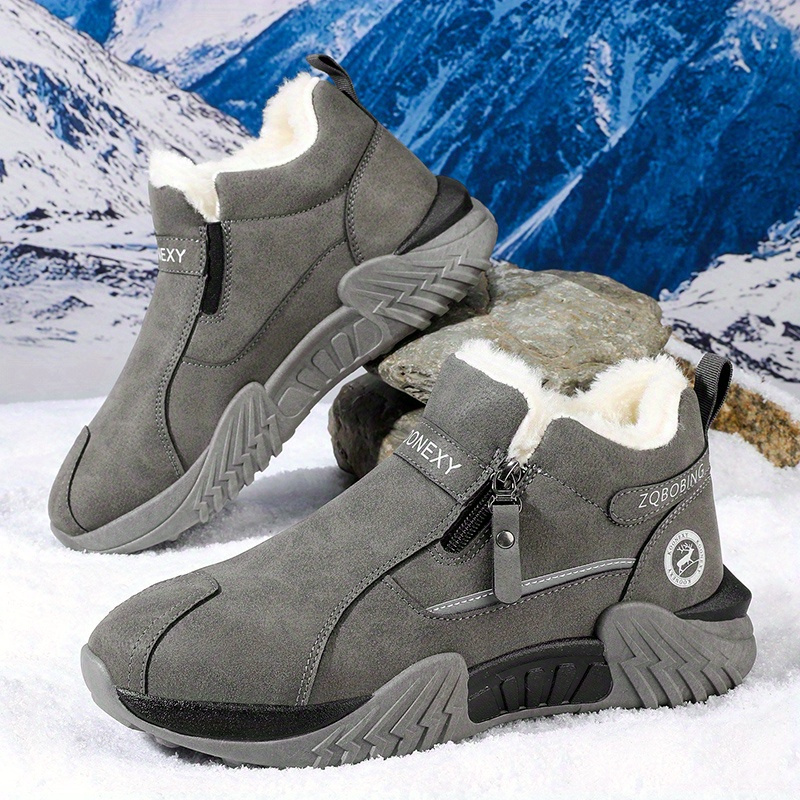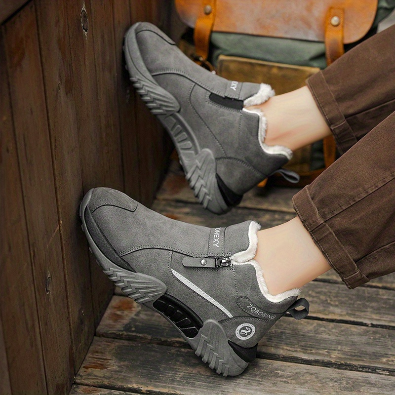 ZQBOBING Men’s Winter Slip-On Short Boots – PU Upper, PVC Sole Traction Tires, Grey/Black Rugged Outdoor Shoes with Round Toe & Ankle for Ice & Snow, Casual & s (No Laces)