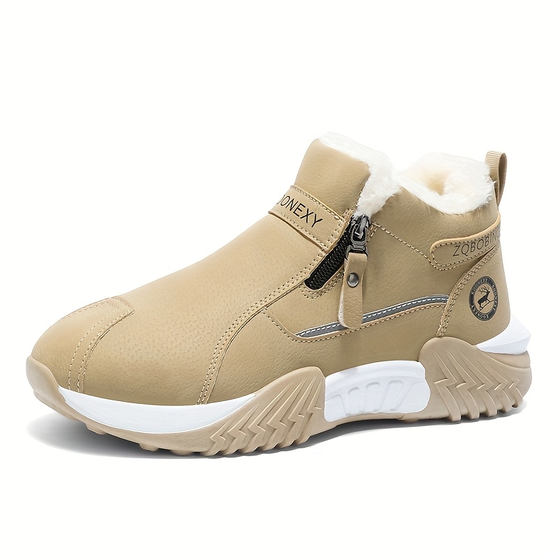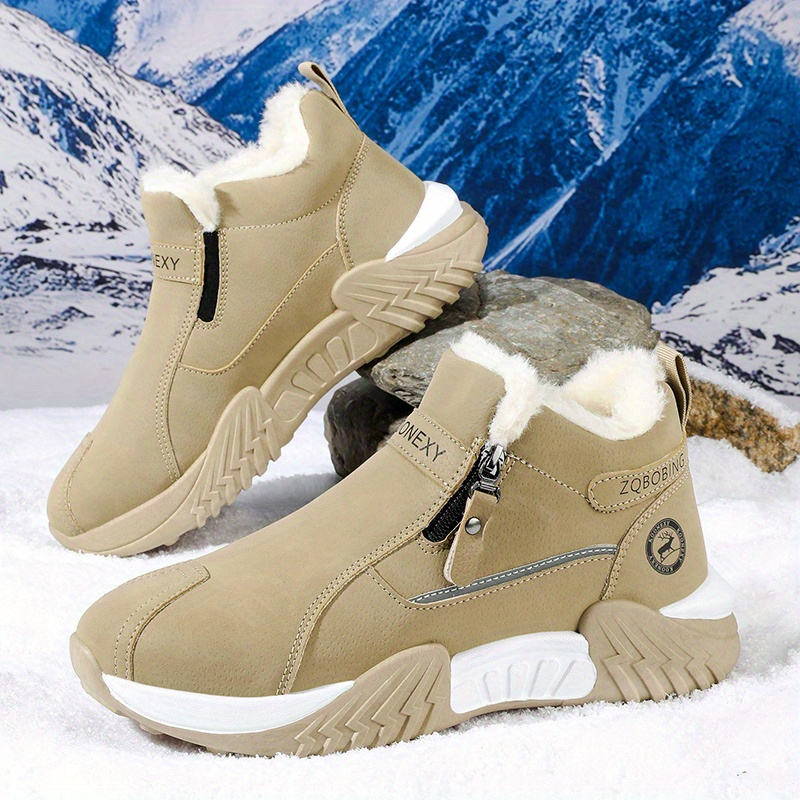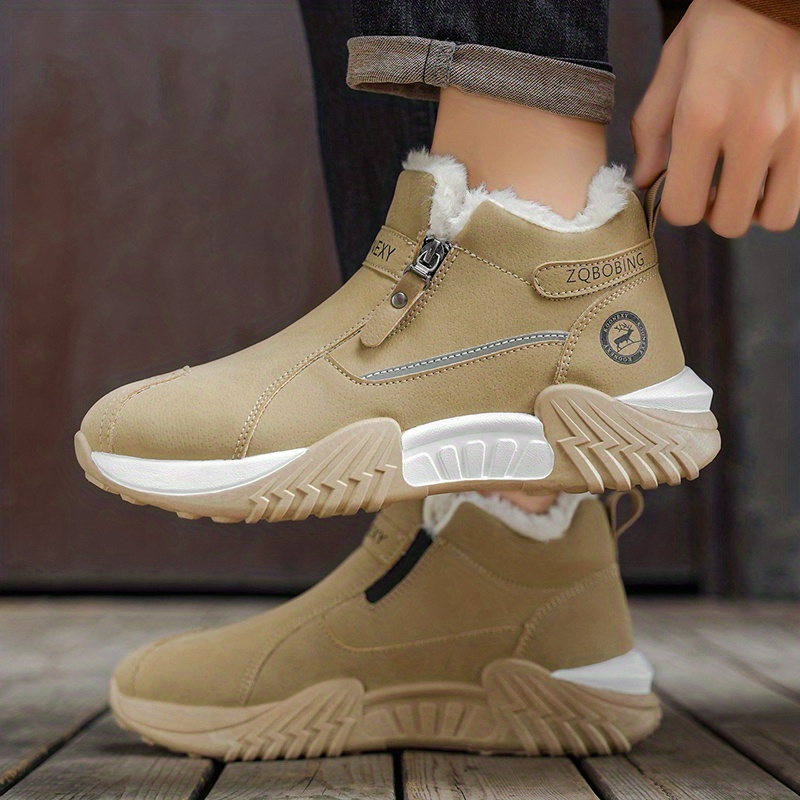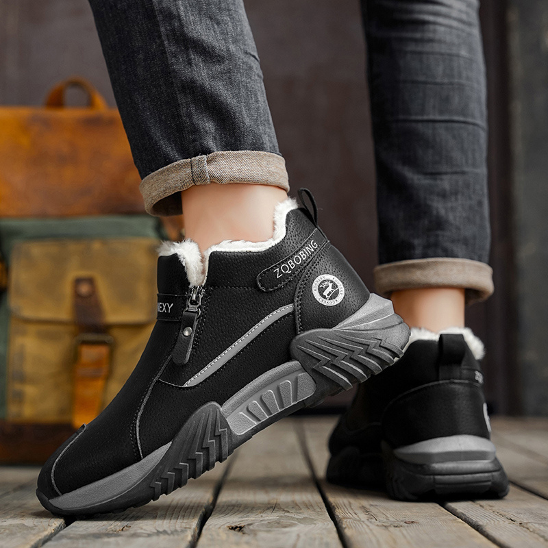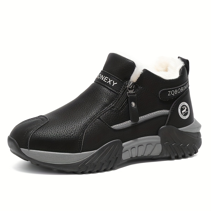 ZQBOBING Men’s Winter Slip-On Short Boots – PU Upper, PVC Sole Traction Tires, Grey/Black Rugged Outdoor Shoes with Round Toe & Ankle for Ice & Snow, Casual & s (No Laces)